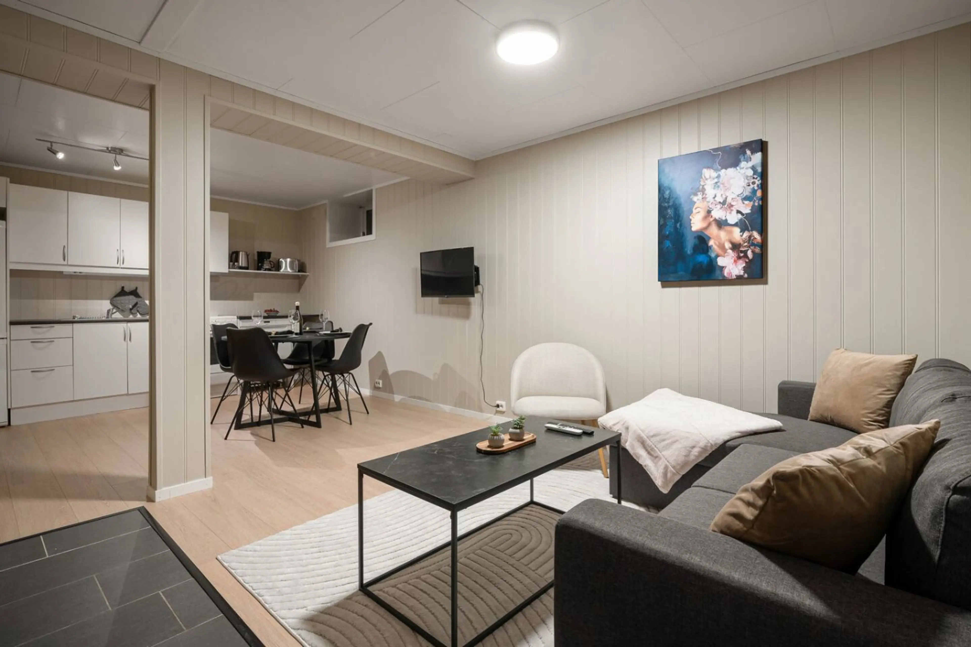 Step into this charming and cozy one-bedroom basement apartment, perfect for a relaxing getaway. Featuring a comfortable 160cm double bed and a sofa bed in the living room, it’s ideal for couples or small groups. Heated floors in the living room and kitchen ensure a warm and inviting atmosphere year...